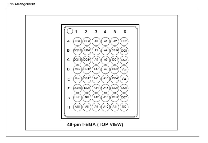 The R1LV0816ABG is packaged in a 48balls fine pitch ball grid array [f-BGA / 7.5 mm×8.5mm with the ball-pitch of 0.75mm and 6x8 array]. It gives the best solution for a compaction of mounting area as well as flexibility of wiring pattern of printed circuit boards.