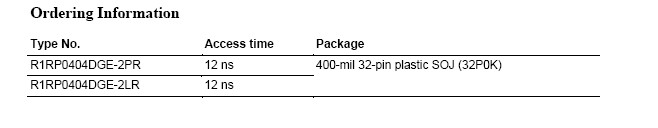 The R1RP0404D is a 4-Mbit high speed static RAM organized 1-Mword × 4-bit. It has realized high speed access time by employing CMOS process (6-transistor memory cell) and high speed circuit designing technology. It is most appropriate for the application which requires high speed and high density memory,such as cache and buffer memory in system. The R1RP0404D is packaged in 400-mil 32-pin SOJ for high