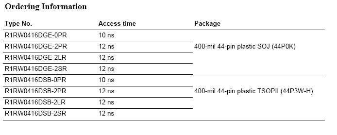 The R1RW0416D is a 4-Mbit high speed static RAM organized 256-kword × 16-bit. It has realized high speed access time by employing CMOS process (6-transistor memory cell) and high speed circuit designing technology. It is most appropriate for the application which requires high speed, high density memory and wide bit width configuration, such as cache and buffer memory in system. Especially, LVersion