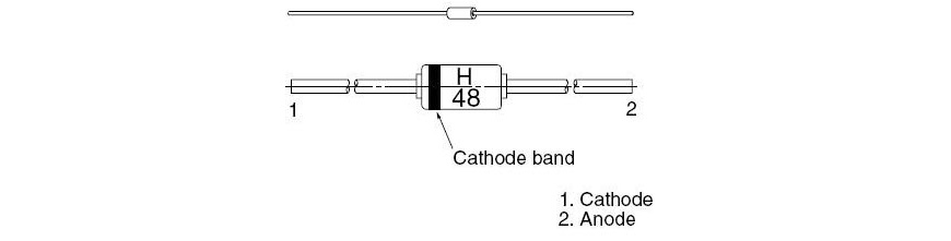 Type No. Cathode band Mark Package Code 1N4148 Black H48 DO-35