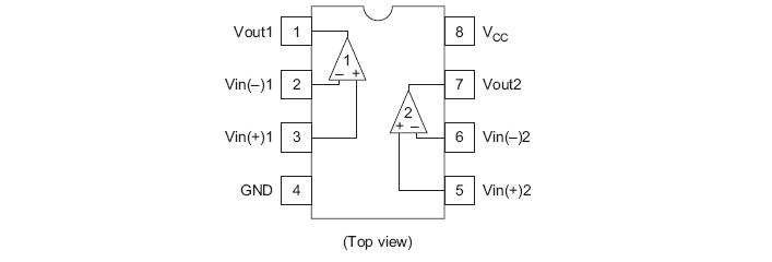 HA17393B is dual comparators designed for general purpose, especially for power control systems. This IC operates from a single power-supply voltage over a wide range of voltages. Operation from split power supply current is also possible and the low power supply current drain is independent of the magnitude of the power supply voltage. These comparators have the merit which ground is included in the common-mode input voltage range at a single-voltage power supply operation.