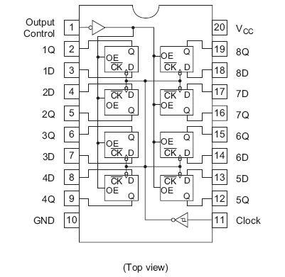 The HD74LS374, 8-bit register features totem-pole three-state outputs designed specifically for driving highlycapacitive or relatively low-impedance loads. The high-impedance third state and increased high-logic-level drive provide this register with the capability of being connected directly to and driving the bus lines in a bus-organized system without need for interface or pull-up components. They are particularly attractive for implementing buffer registers, I/O ports, bidirectional bus drivers, and working registers. The eight flip-flops are edge-triggered D-type flipflops. On the positive transition the clock, the Q outputs will be set to the logic states that ware setup at the D inputs.