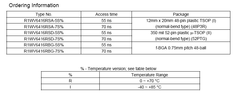 The R1WV6416R Series is provided in 48-pin thin small outline package [TSOP (I): 12mm x 20mm with
