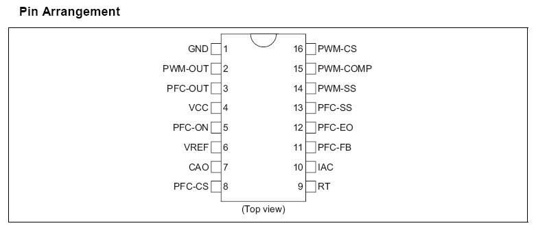 The PFC section and PWM section are each provided with a soft start control pin, enabling a soft start time to be set easily.