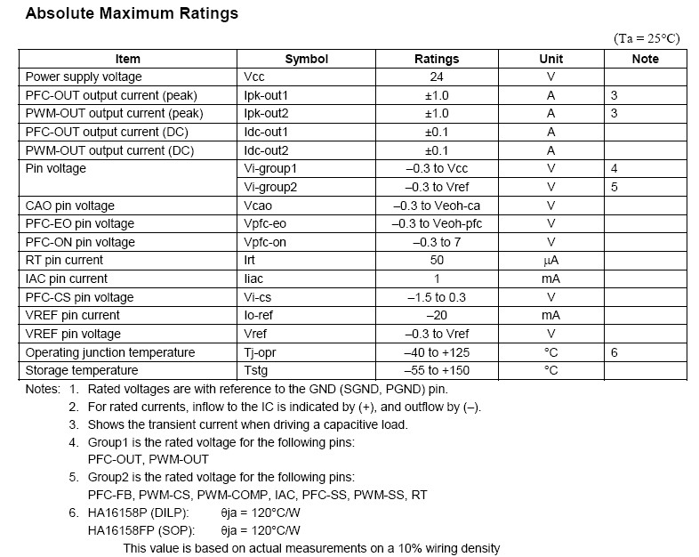 The HA16158 is a power supply controller IC combining an AC-DC converter switching controller for power factor correction and an off-line power supply switching controller. The PFC (power factor correction) section employs average current mode PWM and the off-line power supply control section employs peak current mode PWM.