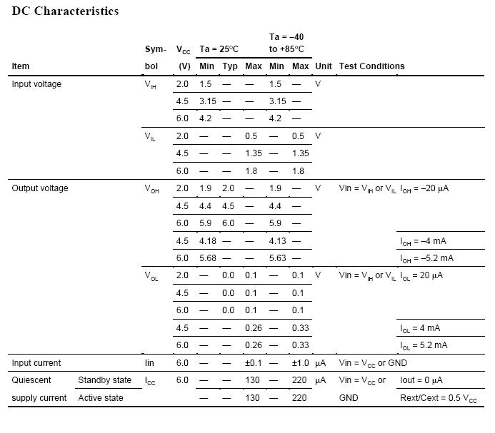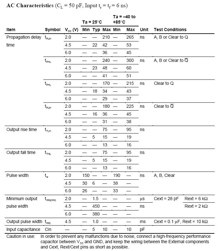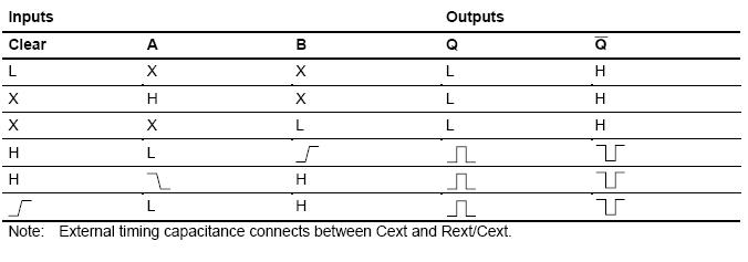Pulse width stability over a wide range of temperature. The output pulse equation is simply: tw = (Rext)(Cext).