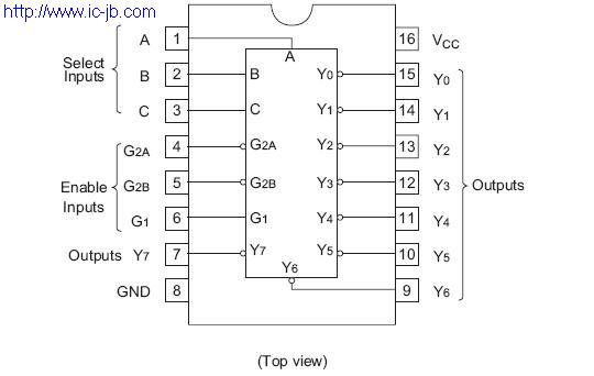 The HD74LS138 decodes one-of-eight line dependent on the conditions at the three binaly select inputs and the three enable inputs. Two active-low and one active-high enable inputs reduce the need for external gates or inverters when expanding. A 24-line decoder can be implemented without external inverters and a 32-line decoder requires only one inverter. An enable input can be used as a data input for demultiplexing applications.